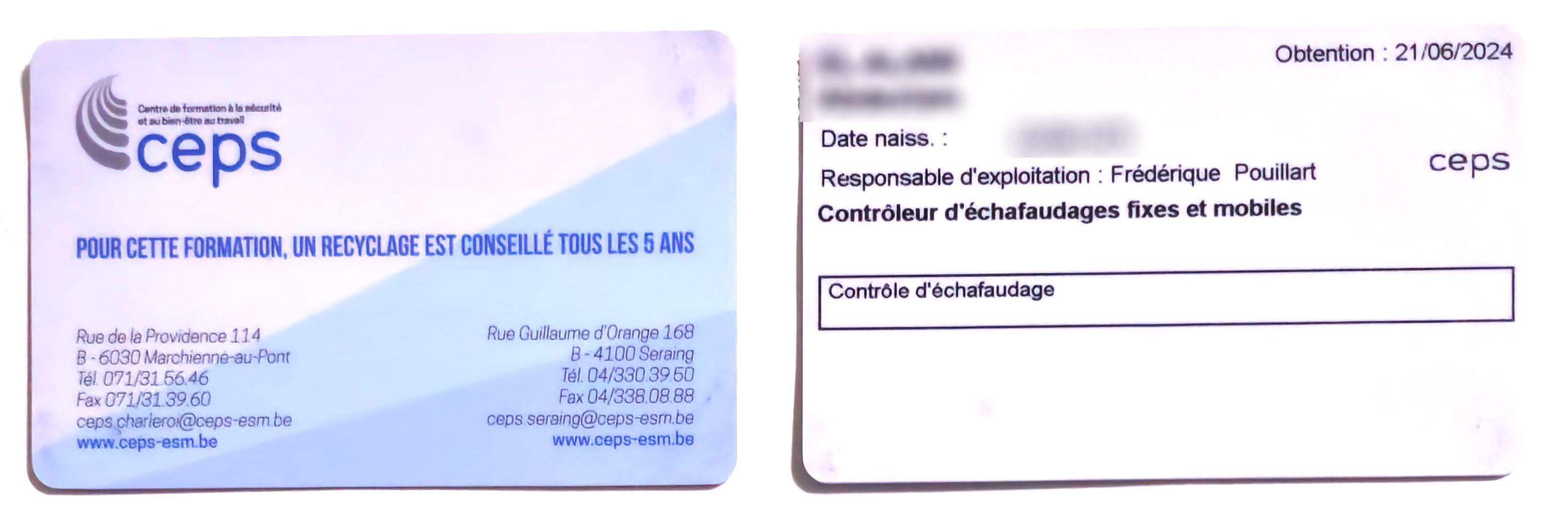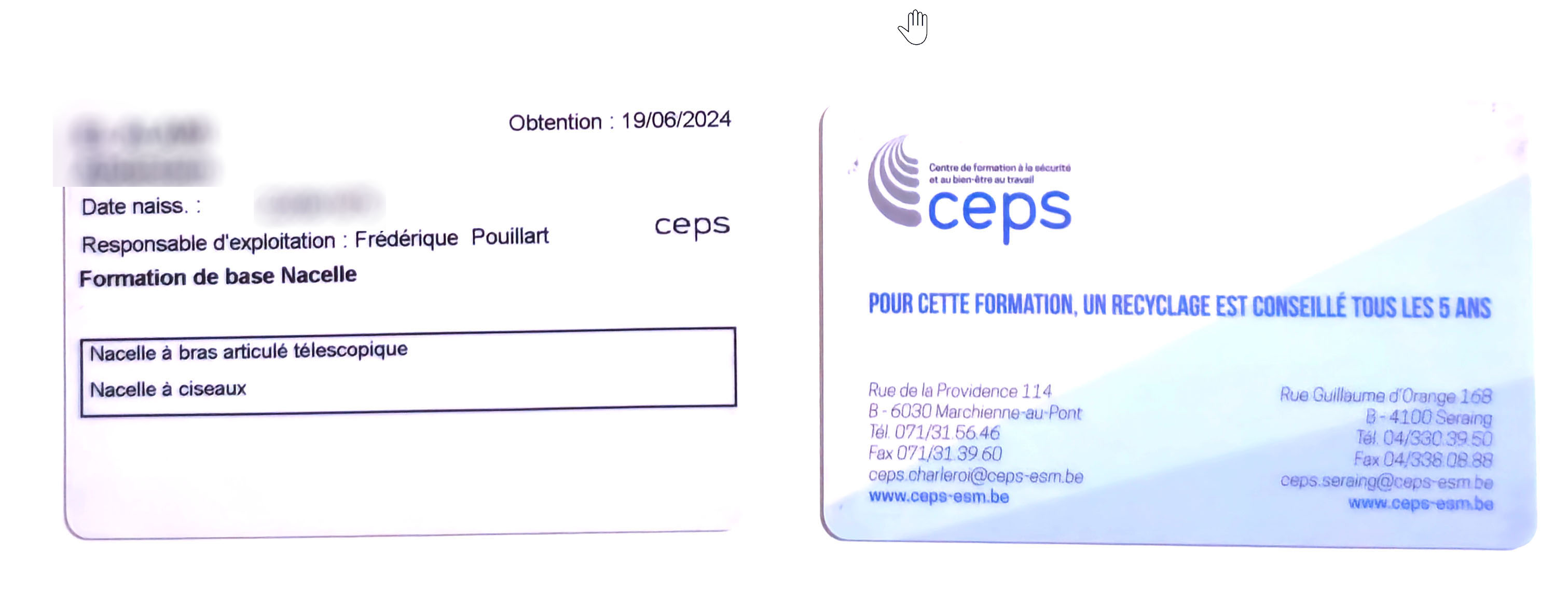 Agent certifié : VCA, Nacelles (ciseaux & télescopique), Contrôleur échafaudage, drone <250 g.